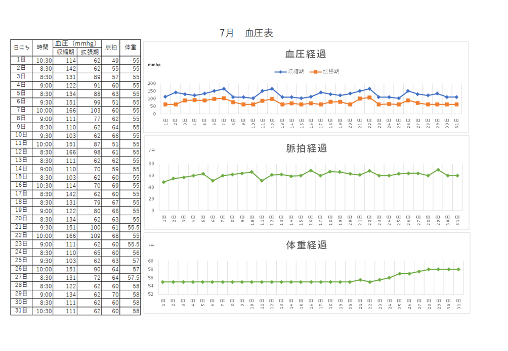 私は訪問看護で働いているのですが、ご利用者の状態を主治医に伝えるために今回このような経過表を作成しました。